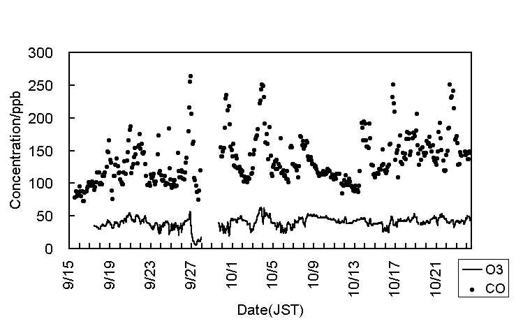 図3:91-10-06気温(実線)および湿度(破線) [標準図]
