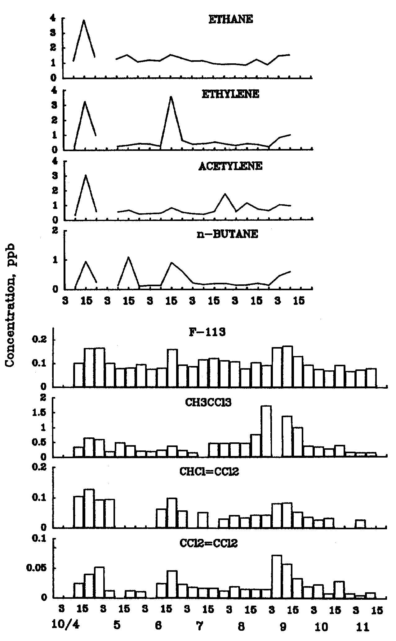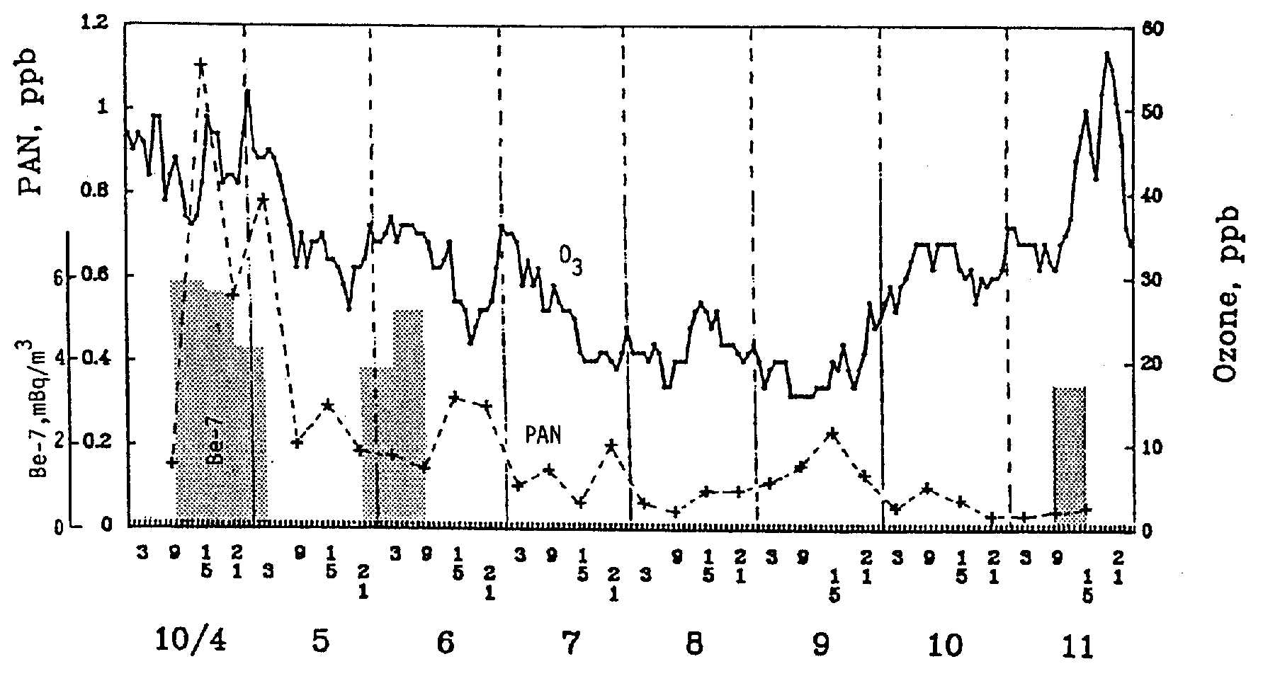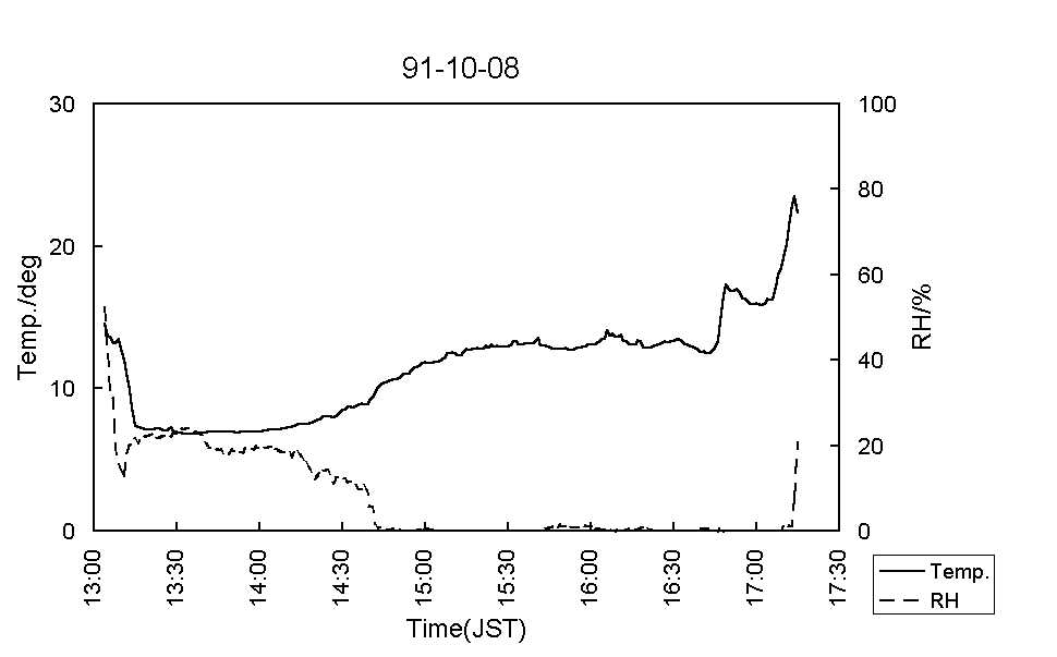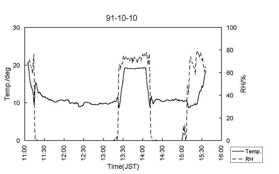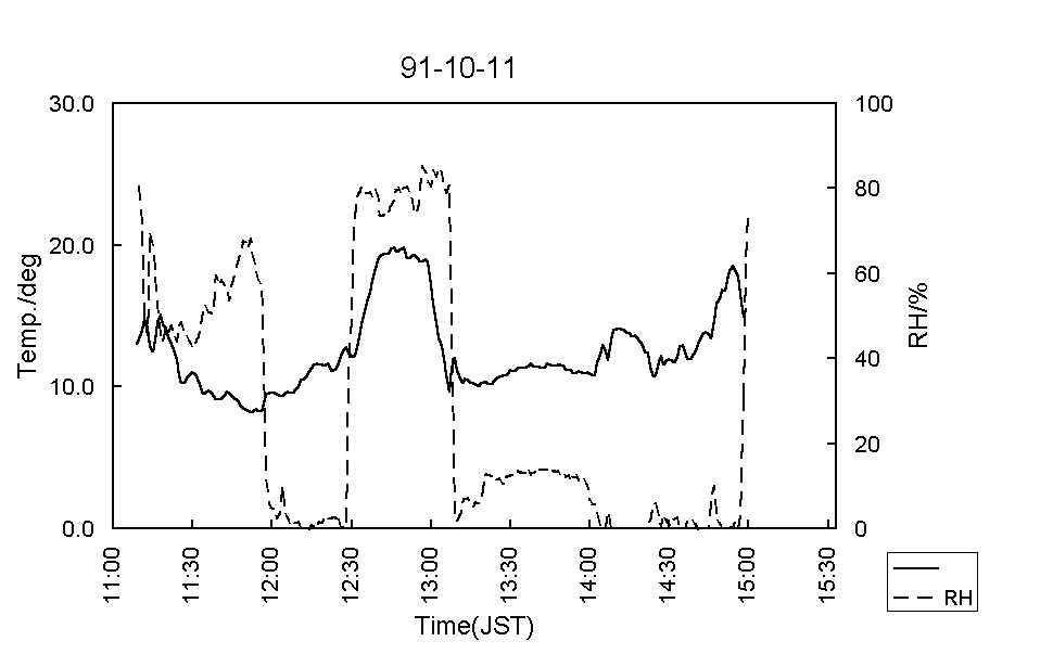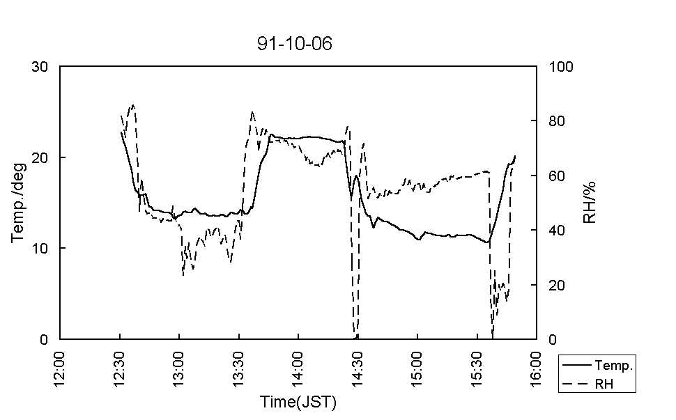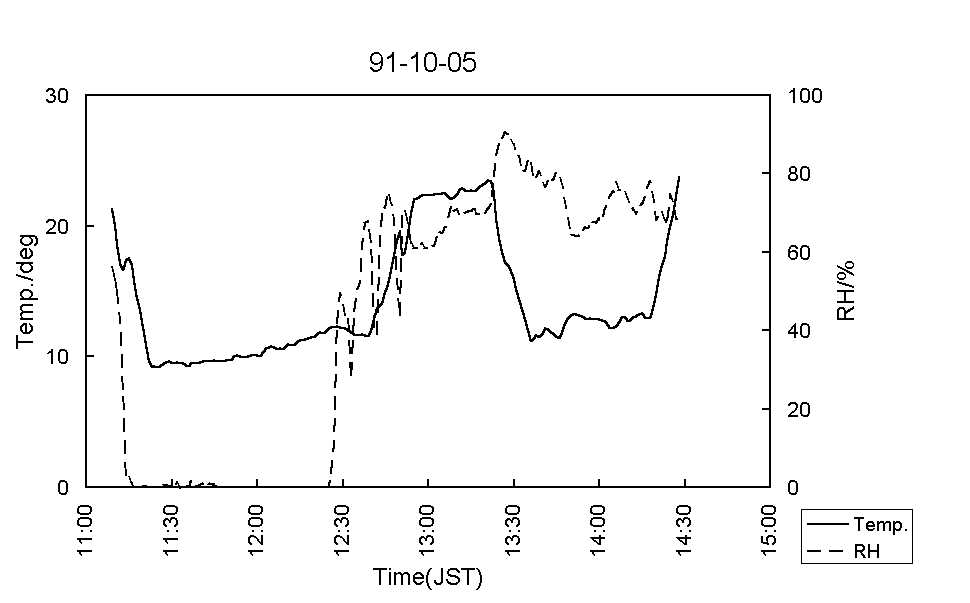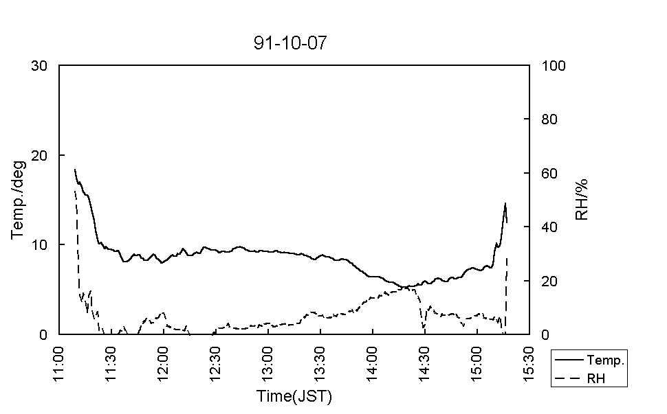 図7:91-10-11気温(実線)および湿度(破線) [標準図]
