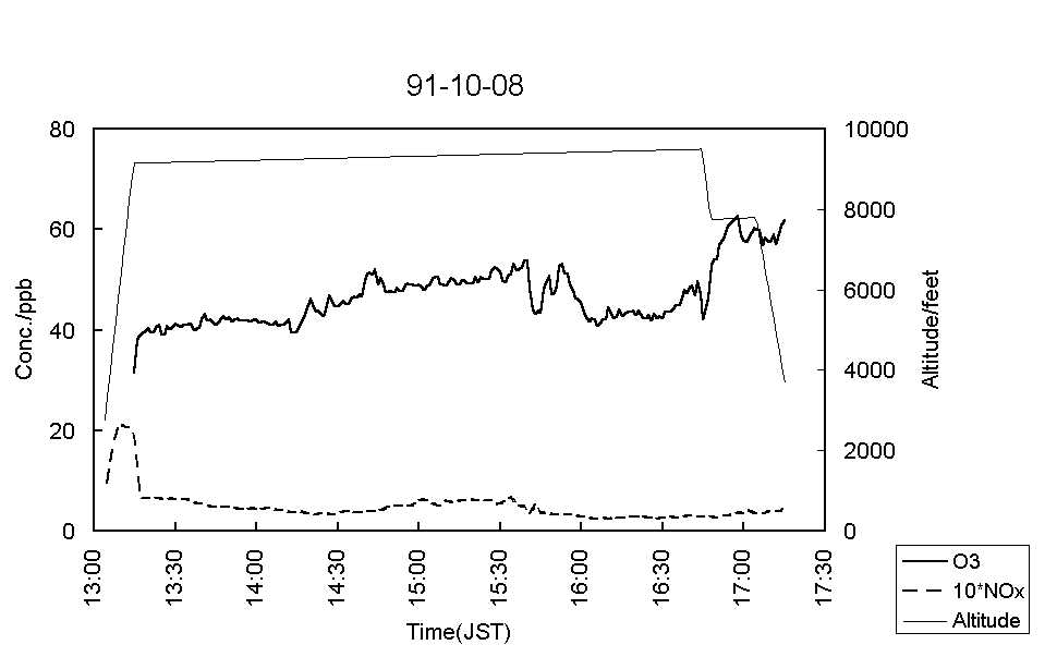 図5:91-10-08気温(実線)および湿度(破線) [標準図]
